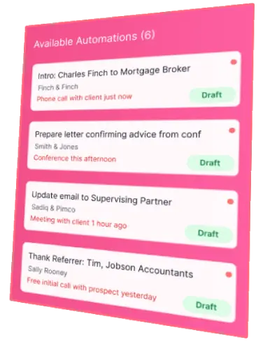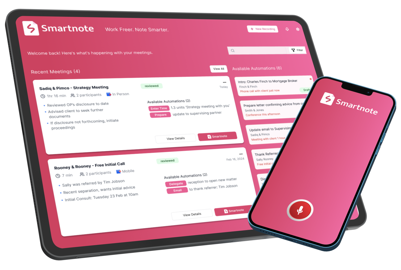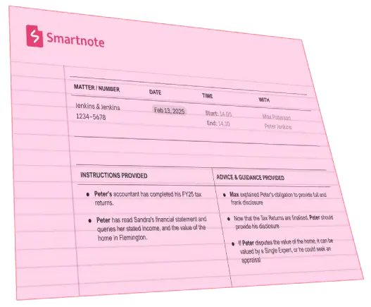 Every call, every meeting, every mediation — you’re meant to file note everything. But real practice doesn’t work that way. You’re focused on your client, not your keyboard. The result? Incomplete notes, lost detail, and a to-do list of admin that steals time from the valuable legal work that requires your expertise.